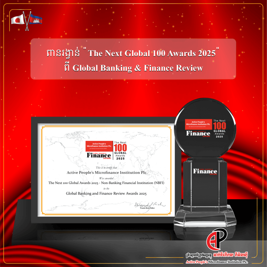 យើងខ្ញុំមានសេចក្តីសោមនស្សរីករាយ សូមប្រកាសថា គ្រឹះស្ថានមីក្រូហិរញ្ញវត្ថុ អាក់ទីវ ភីភល ភីអិលស៊ីបានទទួលពានរង្វាន់ជា គ្រឹះស្ថានមីក្រូហិរញ្ញវត្ថុនៅកម្ពុជា ដែលមានការរីកចម្រើនលឿនជាងគេបំផុត ក្នុងឆ្នាំ២០២៤ “Fastest Growing Microfinance Cambodia 2024” ផ្តល់ជូនដោយ Global Banking & Finance Review ដែលជាស្ថាប័នត្រួតពិនិត្យជាសកលលើវិស័យធនគារ និងហិរញ្ញវត្ថុ។